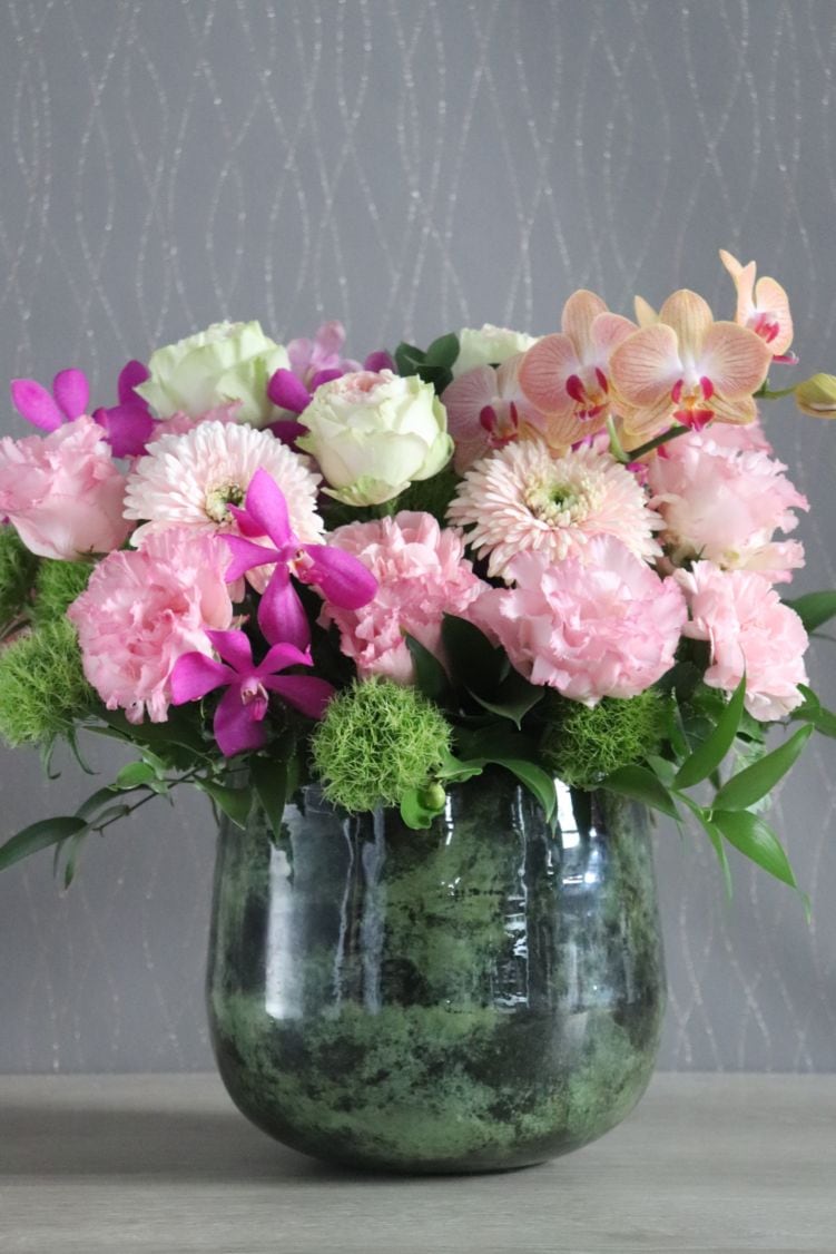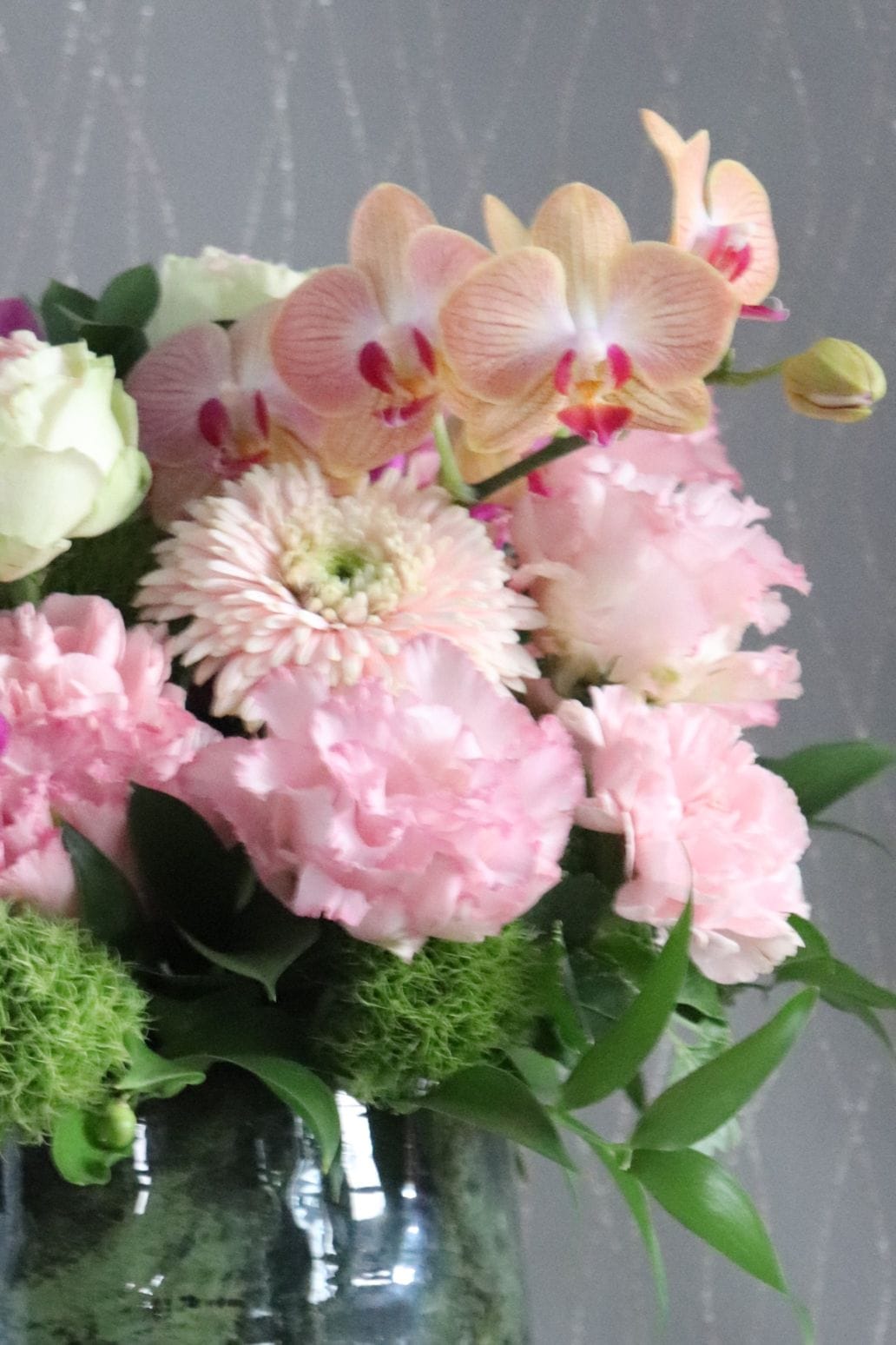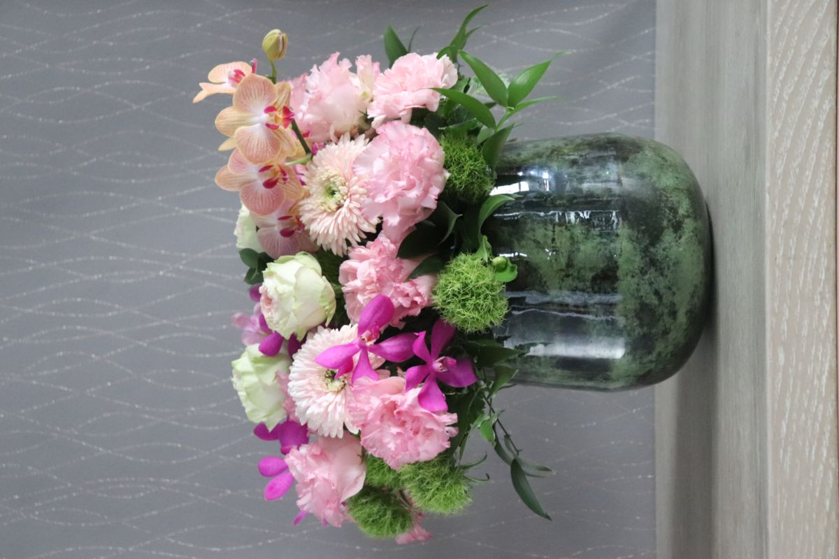 フレッシュフラワー:花材は蘭を入れて華やかにおまかせになります。