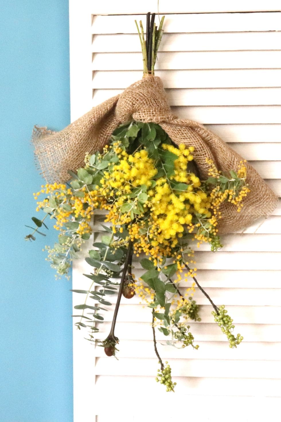 そのままドライフラワーになるミモザのスワッグ