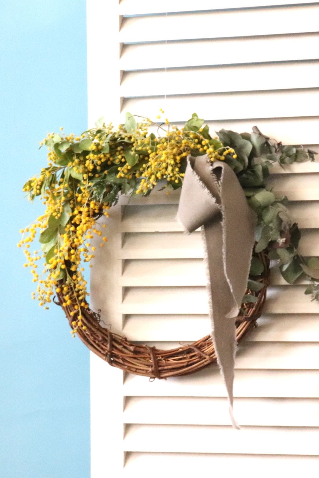 そのままドライフラワーになるミモザのリース