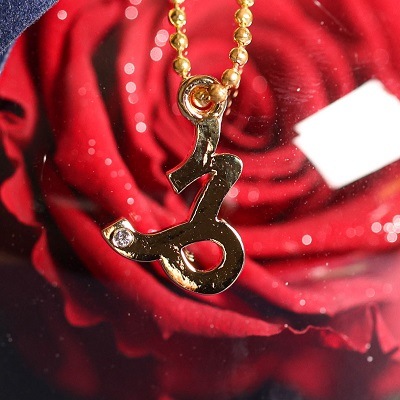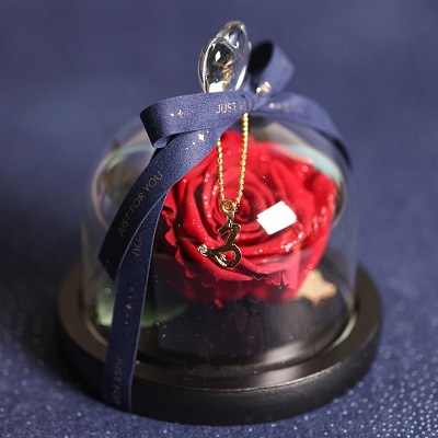 山羊座(12/22~1/19)の星座石である「ガーネット」をイメージしたダイヤモンドローズを象徴的なガラスドームにとじこめました。