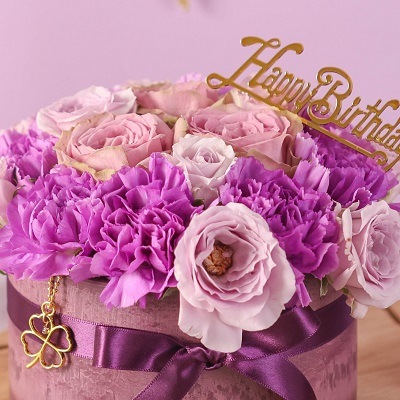 2月の誕生石である「アメジスト」をイメージした、まるでケーキのようなフラワーケーキはBIRTHDAYプレゼントにピッタリです。