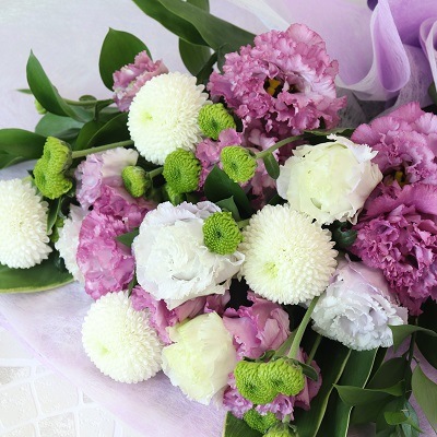 ピンポンマムやトルコキキョウなど、もちの良いお花を選びました。