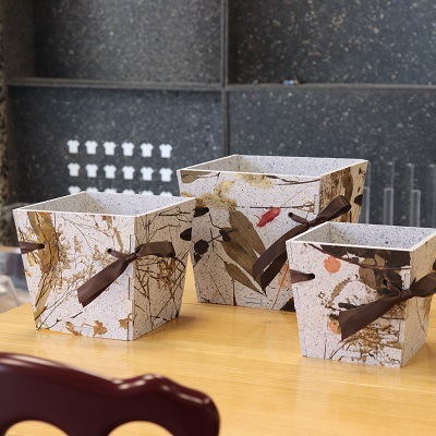 廃棄処分予定の花材を練り込んだ繊維リサイクルボード。あえて様々な種類の植物素材をミックスすることで、自然で唯一無二の風合いが実現しました
