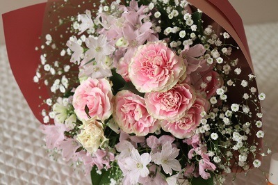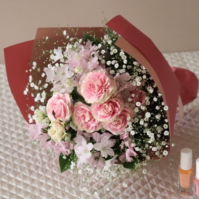 フレッシュフラワー:スプレーバラ・カスミソウ・デルフィニューム