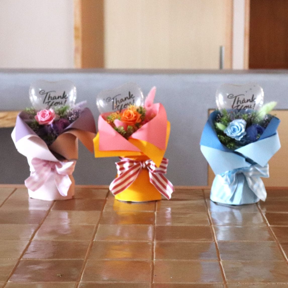 会話も弾むプリザアレンジは、見た瞬間の笑顔が目に浮かびます。