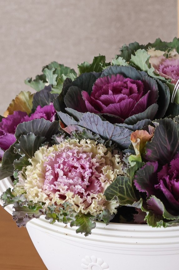 日本では正月飾りや祝いの席に葉牡丹を用いる風習があり、「長寿」や「繁栄」を願う気持ちが込められています。 中心から広がる美しい葉の重なりは、まるで人生が次第に豊かに展開していく様子を思わせ、周囲に幸せが広がっていくというイメージを持たれています。